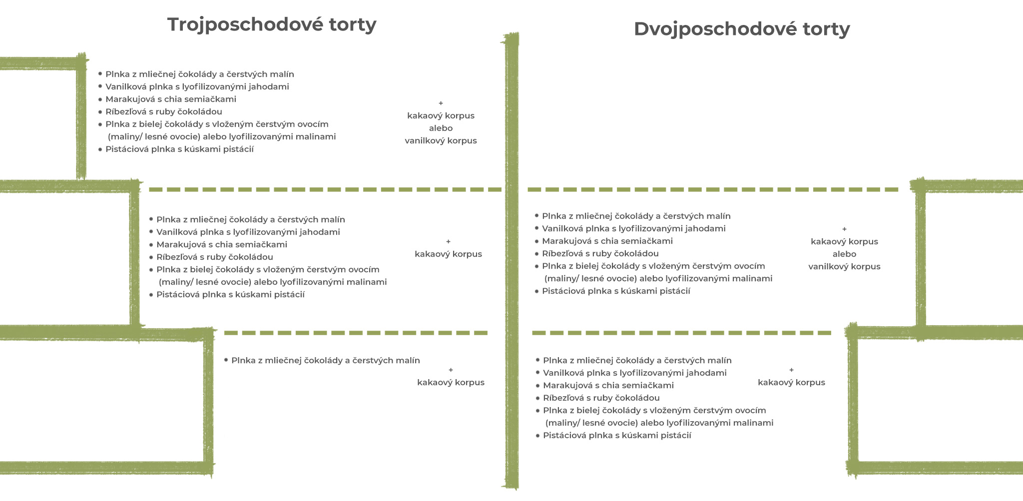 Najlepší spôsob, ako si vybrať tie správne kombinácie plnky a korpusu je objednať si náš Ochutnávkový box, v ktorom nájdete vzorky všetkých vyššie spomenutých plniek vo vhodnom párovaní s korpusmi.