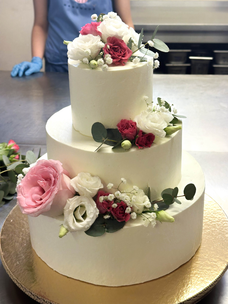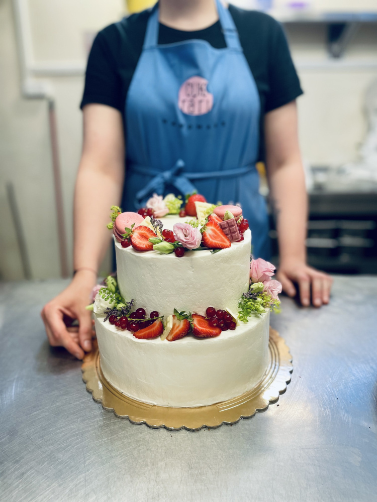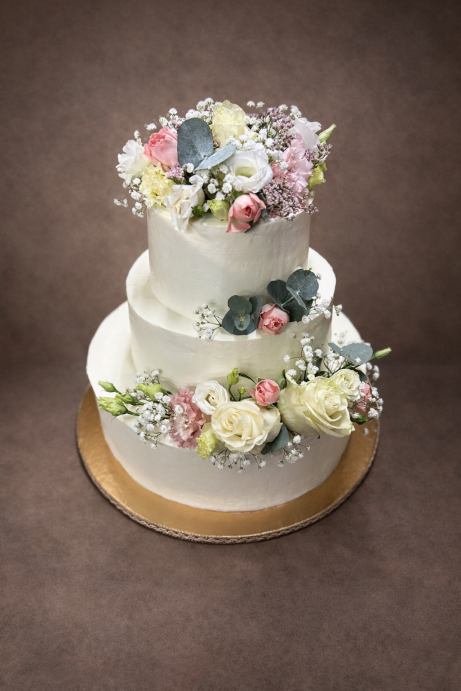Pri výrobe našich toriet používame iba tie najčerstvejšie suroviny, preto na našich svadobných tortách teda nenájdete fondán ani marcipán. Na ich obťah používame ľahký krém zo šľahačky a mascarpone. Pri zdobení sa tiež vydávame prírodnou cestou, najčastejšie používame kvety a čerstvé ovocie.