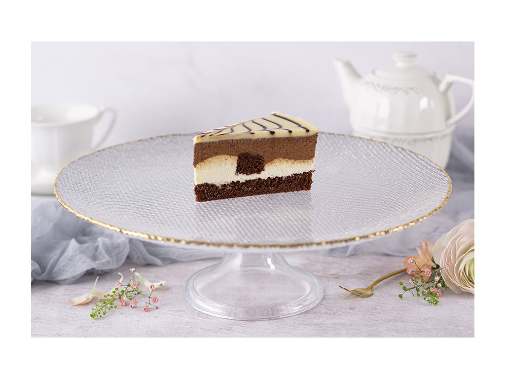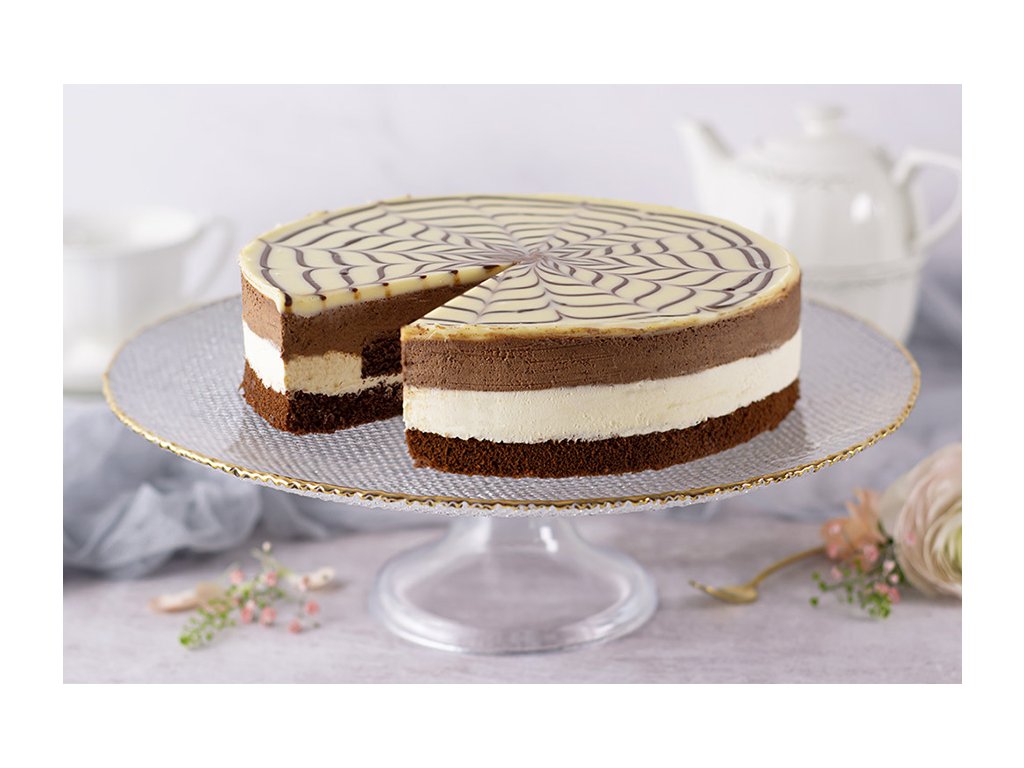 Black & White Chocolate Mousse je ľahký dezert so vzdušnou textúrou, pripravovaný z bielej a horkej čokolády. Jeho základ tvorí nadýchaný piškotový korpus, a zdobí ho kvetinová mozaika z bielej a horkej čokolády. Svojim vzhľadom a chuťou láka najmä deti, takže je dokonalou voľbou na narodeninové oslavy.