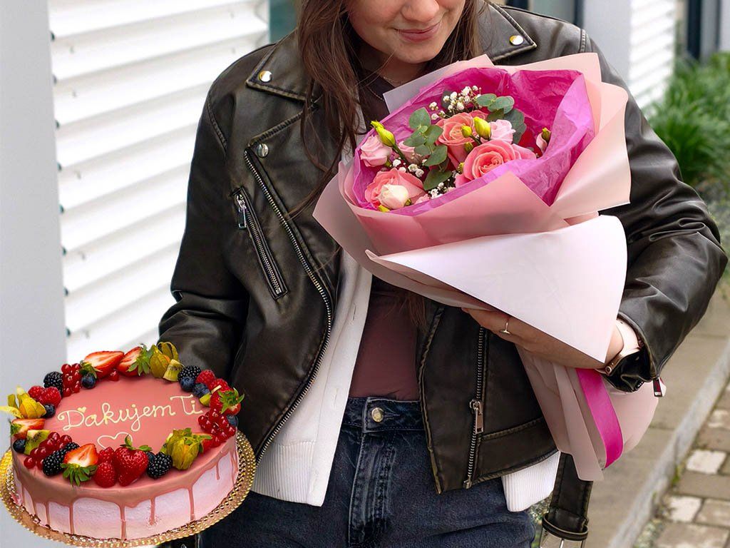 Povrch torty zdobí čerstvé ovocie a jemná poleva z ružovej ruby čokolády, ktorá jej dodáva moderný a elegantný vzhľad. Nápis na torte je možné personalizovať podľa vašich predstáv, vďaka čomu sa stáva ideálnym darčekom na mieru.