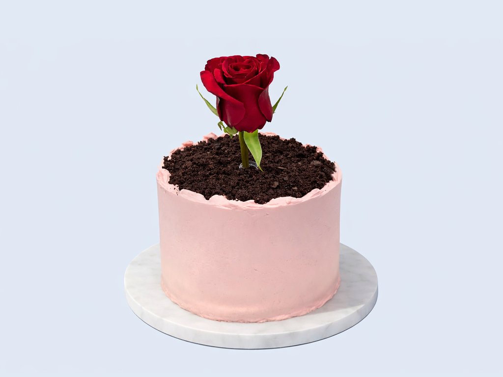 Bloom Cake- elegantná torta inšpirovaná prírodou, ktorá na prvý pohľad očarí a chuťou presvedčí. Jemný ružový krém, efekt „zeminy“ z kakaového korpusu a čerstvý kvietok na vrchu robia z tejto torty ideálny darček aj stredobod osláv. Základ tvorí vláčny kakaový korpus, ktorý je prekladaný smotanovo-čokoládovou plnkou v dvoch variantoch – svetlej a tmavej. Každá vrstva korpusu je potretá lahodným višňovým džemom, ktorý dodáva torte sviežu ovocnú kyselkavosť a krásne vyvažuje čokoládovú chuť. Kombinácia jemnej smotany, kvalitného kakaa a výrazných višní vytvára harmonický chuťový zážitok, ktorý nie je presladený a osloví aj náročnejších milovníkov dezertov. Kvietok je zapichnutý v šikovne zamaskovanej skúmavke- torty sa teda priamo nedotýka.